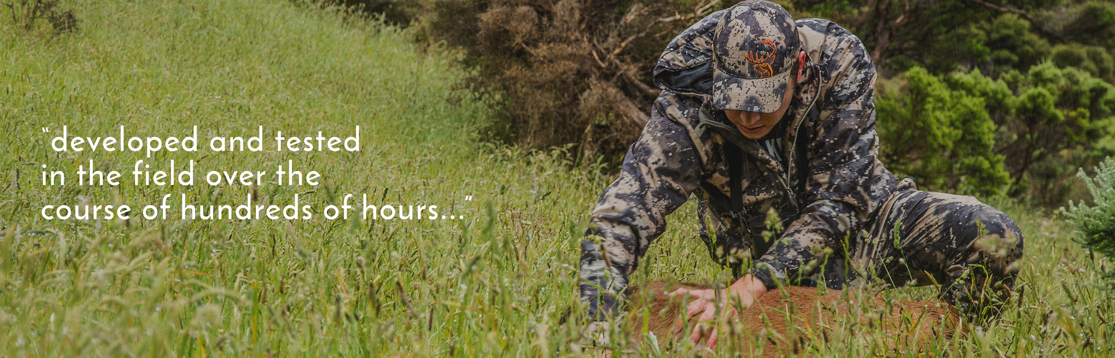 In early 2014 our curiosity sent us down a path of research and development that lead to the creation of Desolve Camouflage, a pattern designed to fool animals, not hunters. Our research highlighted the massive problems with current “sticks and leaves” styles of camouflage. Ungulates (hooved animals) don’t see the way we do, instead their vision is blurrier so they don't focus on detail, instead they have been trained to focus their attention on outline. A new style of camo that breaks up this outline with large macro and micro shapes creates the illusion of depth, so the subject appears to be a series of small objects spread out across a range of distances. Desolve Camouflage was developed and tested in the field over the course of hundreds of hours to manipulate the specific colour and light tones most prominent to ungulates and the results are simply astonishing.