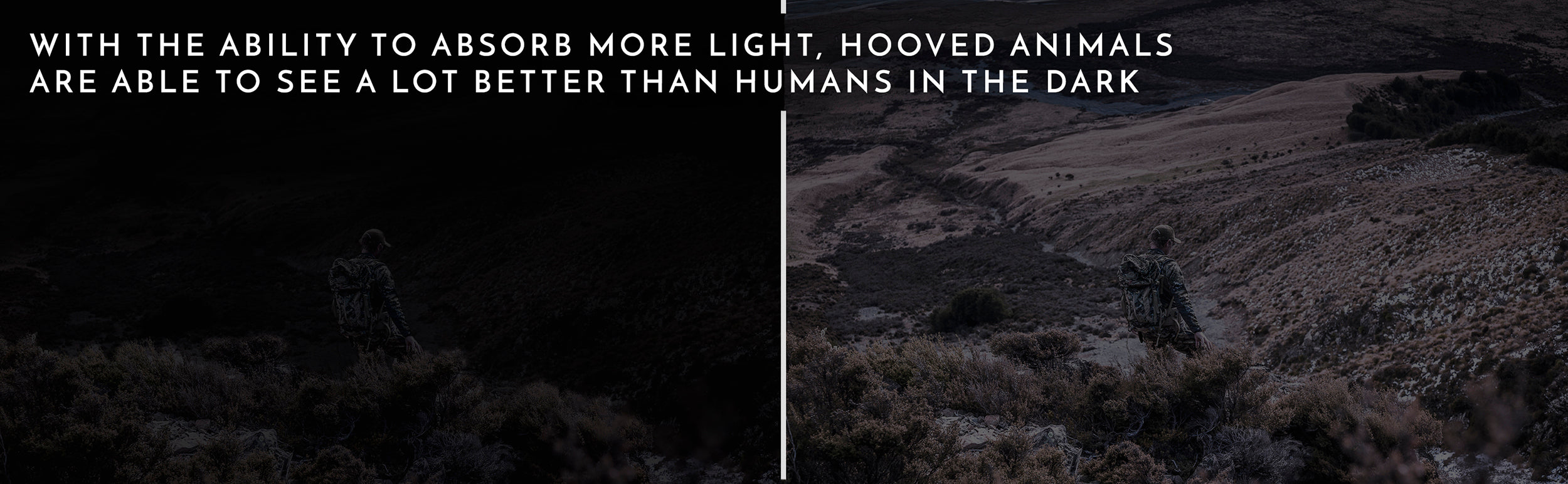 How animals see at night shouldn’t really affect most hunters as we can’t see ourselves. However, it is interesting to shed some light on why deer are more likely to move around at first and last light. Ungulates have a layer in their eyes called the Tapetum Lucidum which sits just behind the retina. This layer acts like a type of mirror and this is what we see when shining a light at them at night. This layer sits at the back of the eye so that any light that isn’t absorbed by the retina on the first pass, gets a chance to be soaked up on the way back out.